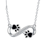 Tento okouzlující náhrdelník spojuje dva úžasné symboly: nekonečnou lásku k našim čtyřnohým přátelům a jejich jedinečné otisky tlapek, které zanechávají v našich srdcích. Elegantně zakřivený přívěsek ve tvaru nekonečna, zdobený třpytivými krystaly, jemně objímá vaše dekolté a každý den vám připomíná toto zvláštní spojení. Nadčasový klenot, který vyjadřuje bezpodmínečnou lásku k vašemu věrnému společníkovi zvlášť stylovým způsobem.